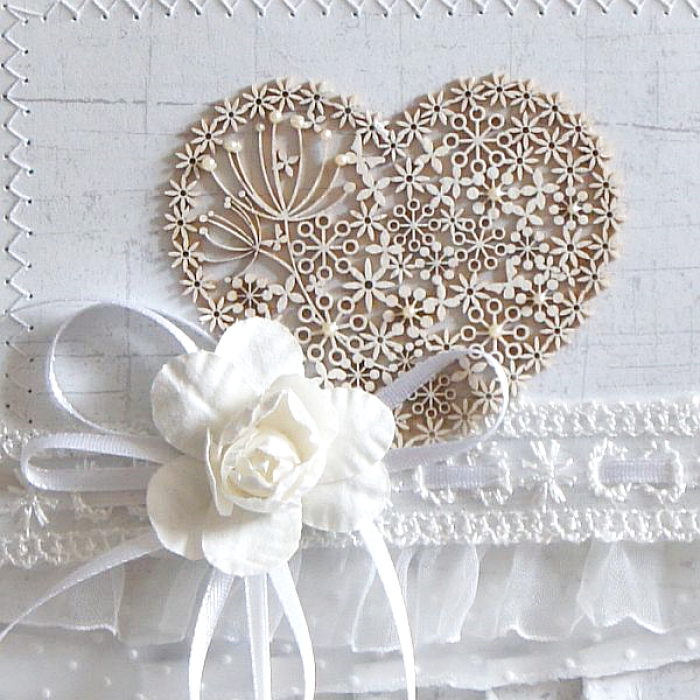 Delikatna, romantyczna i pełna uroku kartka na wyjątkową okazję. Wykonana ręcznie z wykorzystaniem profesjonalnych materiałów. Przeszywana maszynowo. Główną ozdobę stanowi piękne serce.