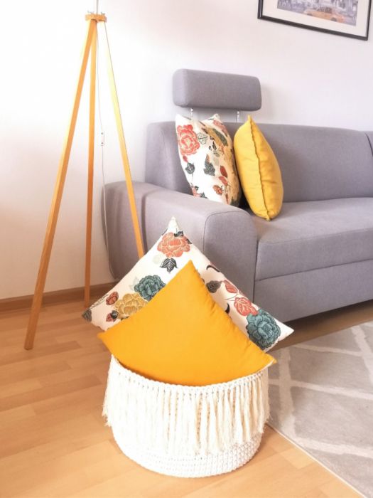 Duży kosz BOHO wykonany na szydełku z sznurka bawełnianego o średnicy 5mm z frędzlami...