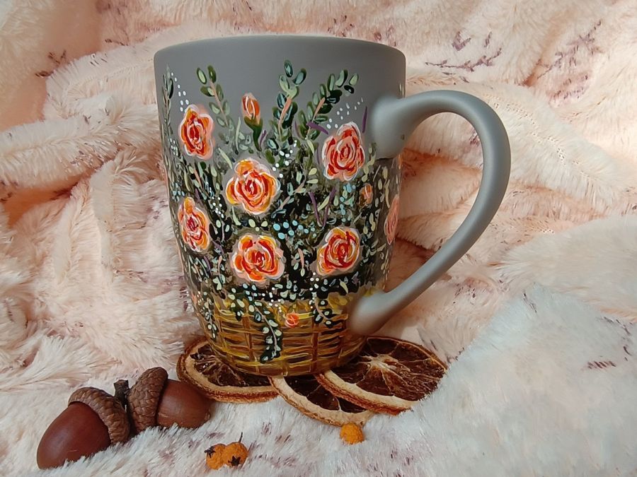 Ręcznie malowany kubek ,, Kosz Róż,,