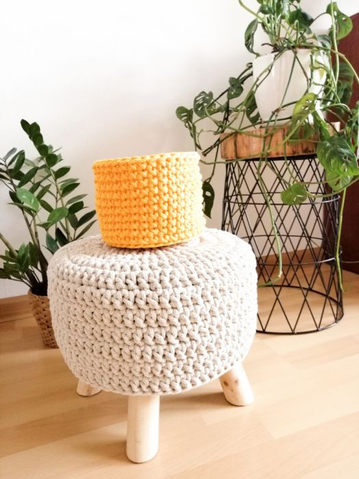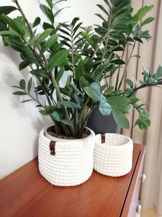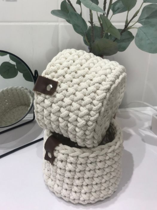 Okrągły koszyk ze sznurka bawełnianego o średnicy 5mm.