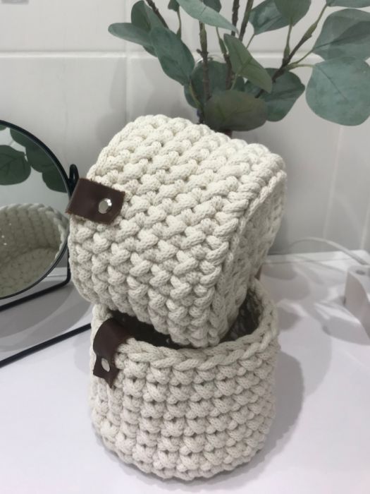 Okrągły koszyk ze sznurka bawełnianego o średnicy 5mm.