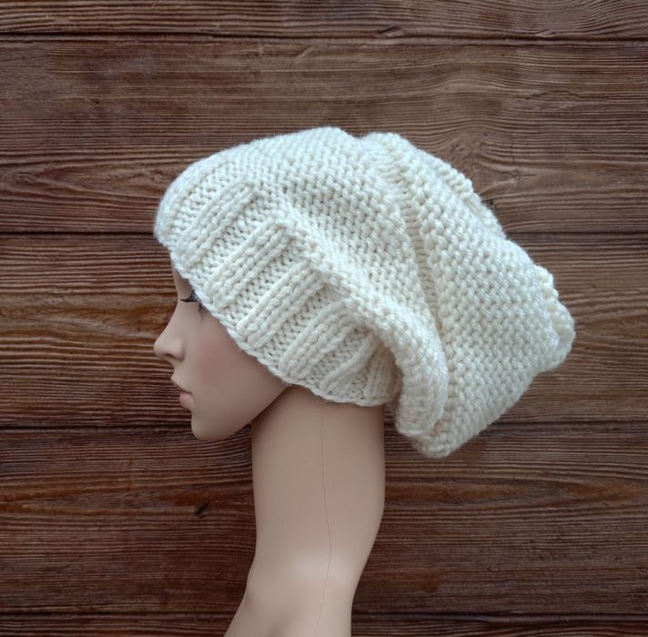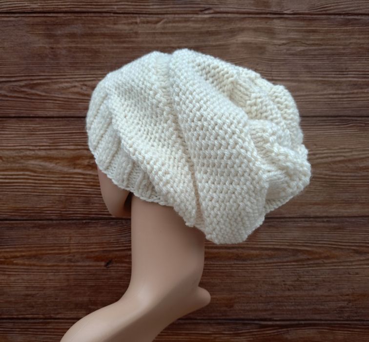Kremowa obszerna luźna czapka,