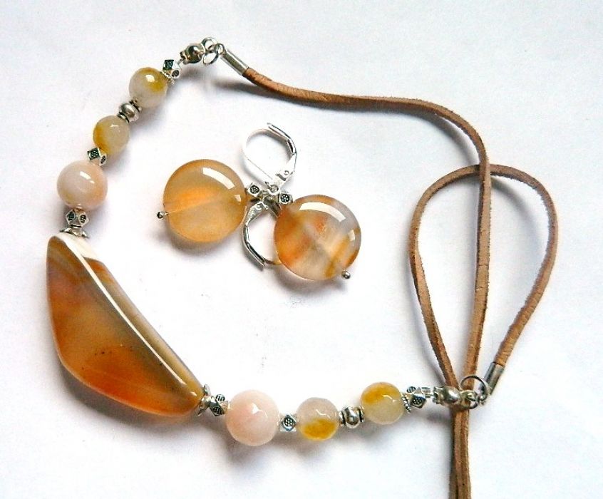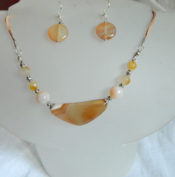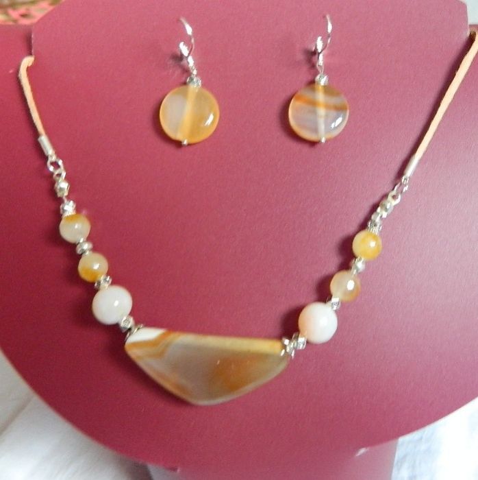 Zadaj pytanie dotyczące produktu: Kremowe agaty, piękny naszyjnik, kolia i kolczyki, zestaw biżuterii