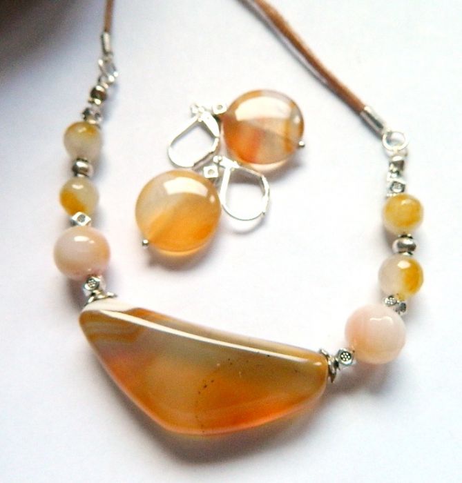 Kamienie, z których wykonano oferowaną biżuterię do naturalne agaty. Ich kolor zależy od tła i oświetlenia (starałam się pokazać to na zdjęciach)