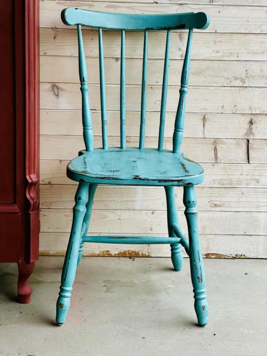 Nazwa produktu: Krzesło turkusowe shabby chic, patyczak – z charakterem
