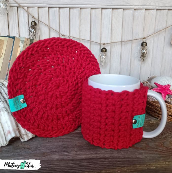 Nazwa produktu: Kubek w sweterku i podkładka ~ czerwony