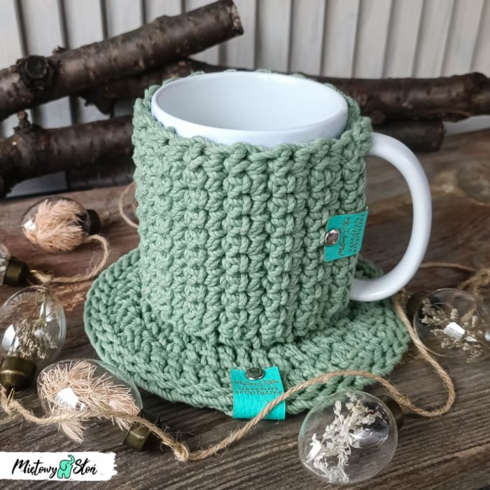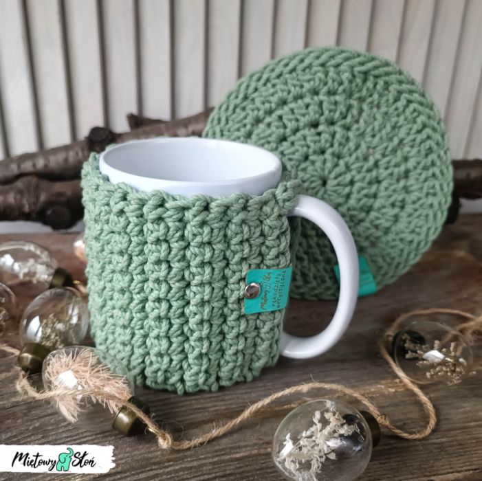 Nazwa produktu: Kubek w sweterku i podkładka ~ eukaliptus