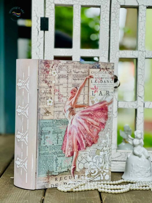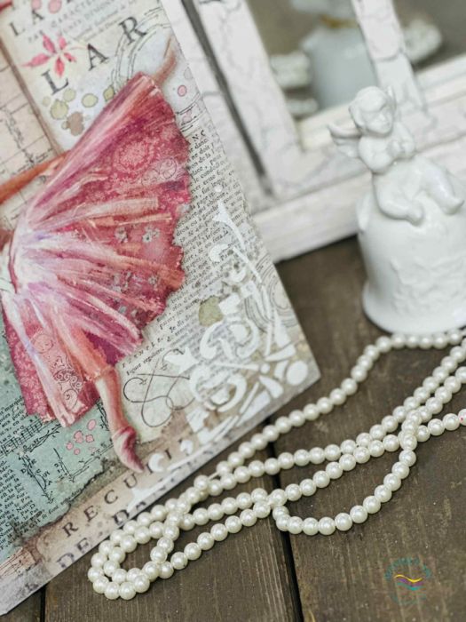 Stylizacja – farba kredowa i papier ryżowy z motywem baletnicy.
