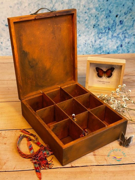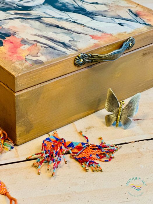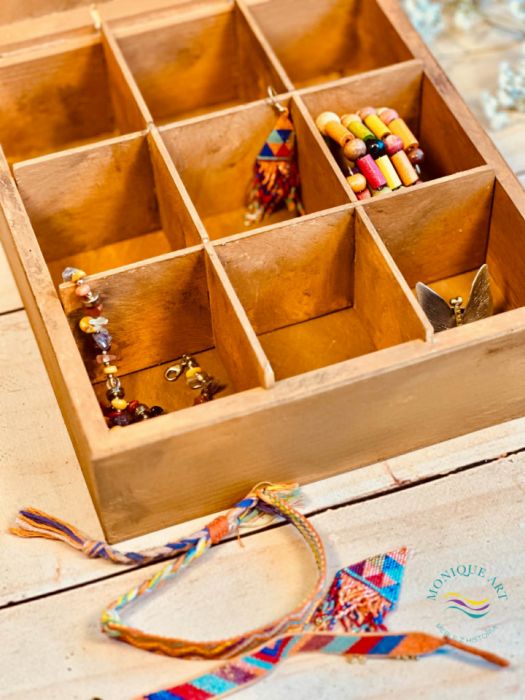 Drewniane pudełko na biżuterię albo na inne drobiazgi.