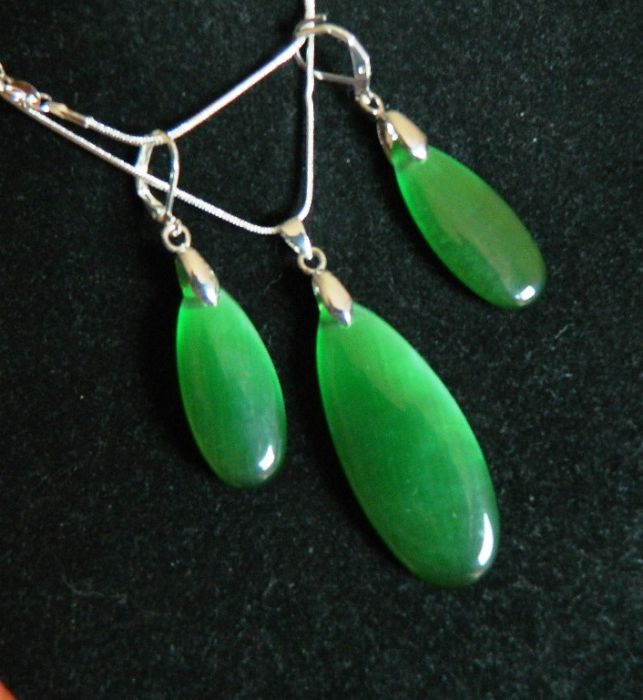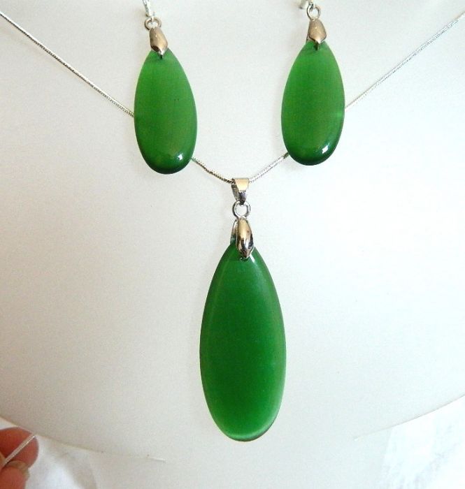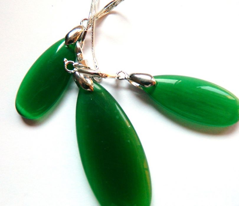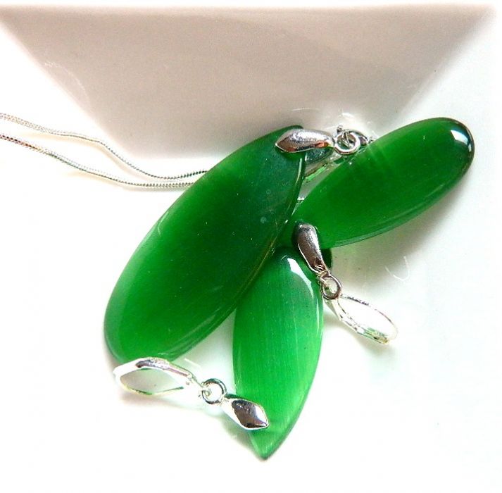 Nazwa produktu: Zielone kocie oko,wisiorek, kolczyki, zestaw