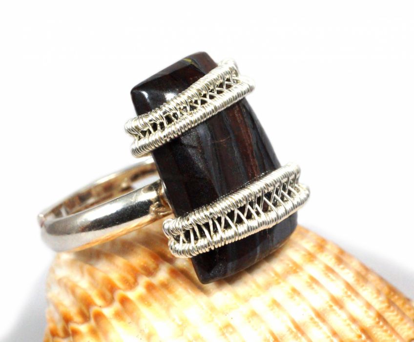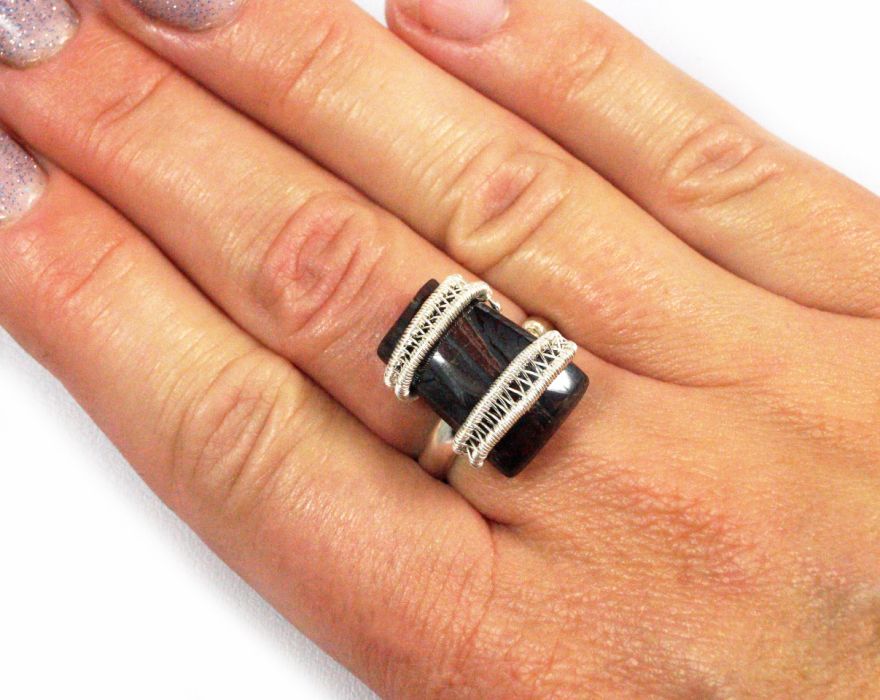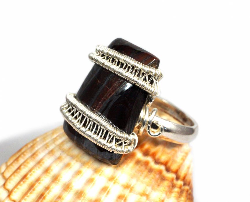 Pierścionek wykonany w bardzo pracochłonnej technice wire-wrapping.