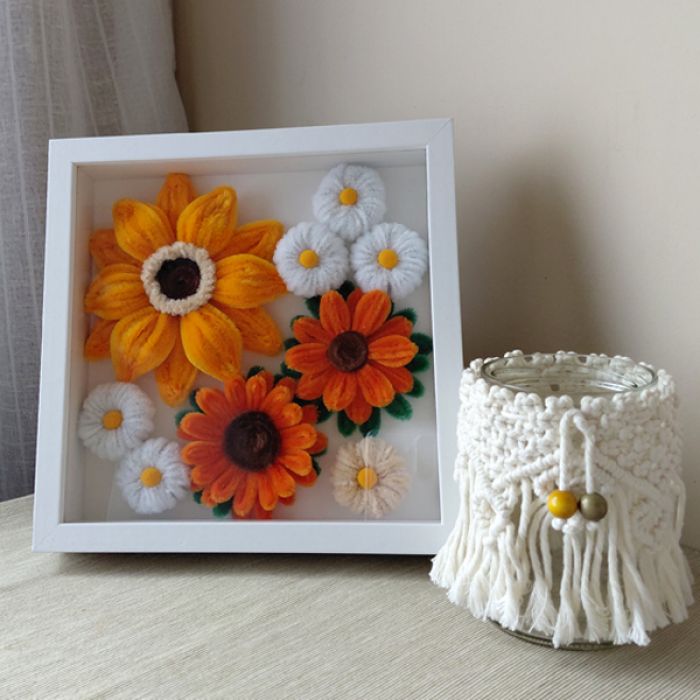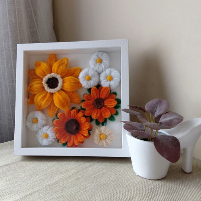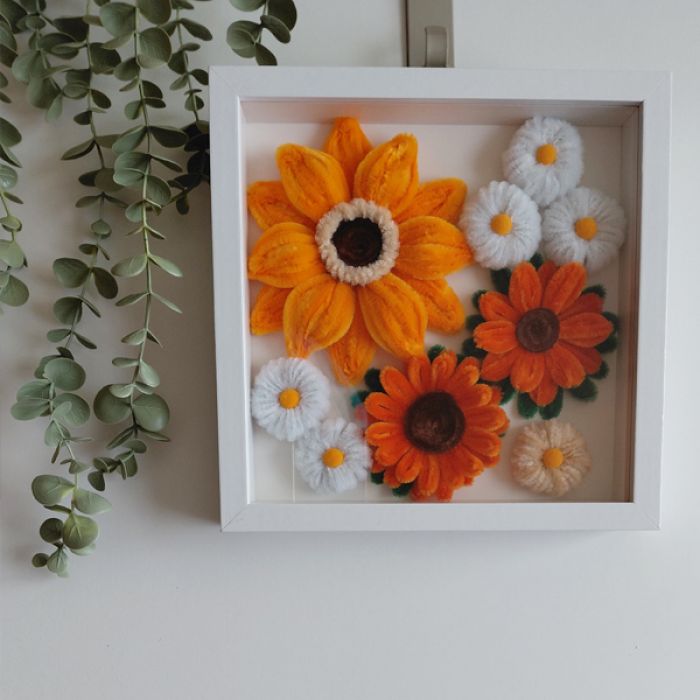 Szukasz wyjątkowego i niezapomnianego prezentu? Ta ręcznie zrobiona dekoracja to idealny wybór na każdą okazję. Kwiaty przypominające lato, wiecznie kwitnące, które nigdy nie zwiędną. Każdy płatek jest starannie uformowany z miękkich, puszystych drucików szenilowych, tworząc żywy, namacalny obraz. Zapakowane w pudełko bezpiecznie dotrą do odbiorcy. Wielkość dekoracji w formie owalu 23,5 cm x 23,5 cm