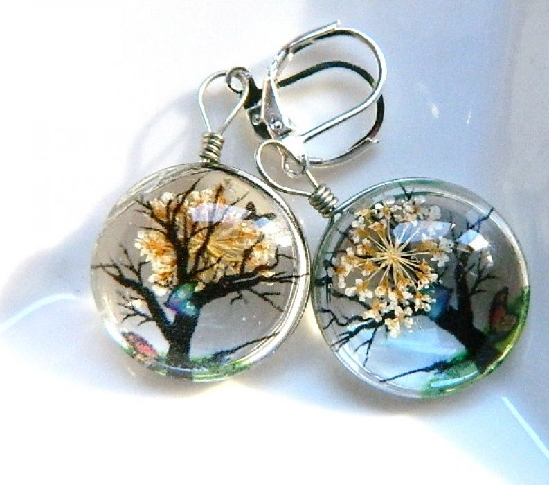 Nazwa produktu: Drzewka i motylki w szkle, oryginalne kolczyki