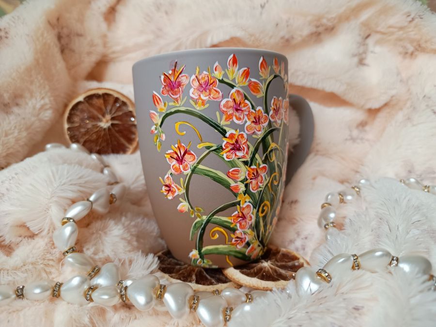 Kubek malowany wiele godzin z wielką troską o wszelkie szczegóły z miłości do natury, z miłości do tego co piękne i ulotne..