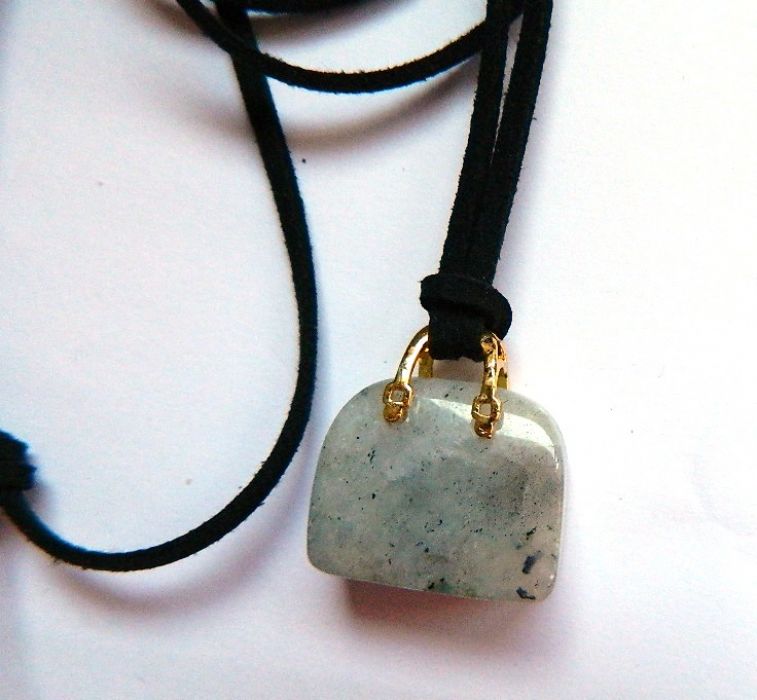 Kamień jest w kształcie damskiej torebki, rączki torebki stanowią krawatkę - zdjęcia powiedzą więcej.