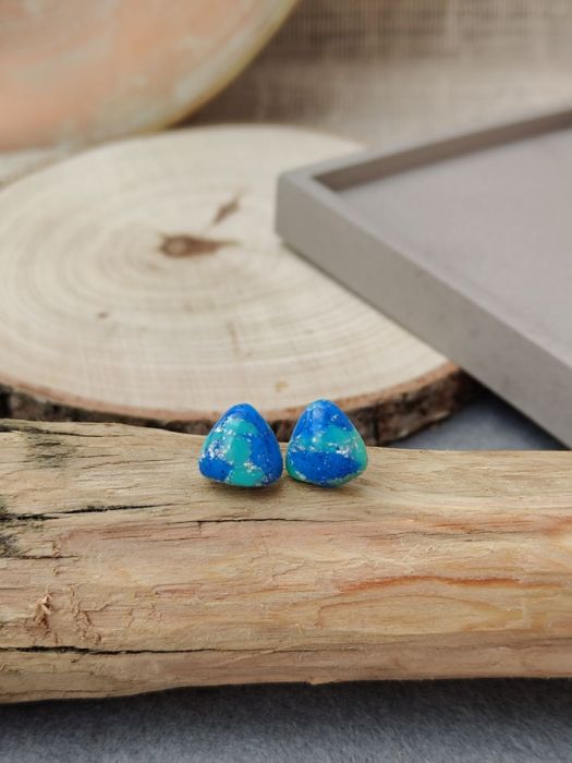 Zanurz się w głębi morskich inspiracji dzięki wyjątkowym kolczykom w kształcie trójkąta. Ich hipnotyzujące odcienie błękitu i turkusu, przełamane delikatnym połyskiem drobinek, przywodzą na myśl spokojne fale oceanu i letnie dni nad wodą. Każda para jest ręcznie wykonana, co sprawia, że kolczyki są niepowtarzalne i pełne artystycznego charakteru. To idealny dodatek dla osób, które kochają subtelną elegancję z nutą świeżości i koloru.