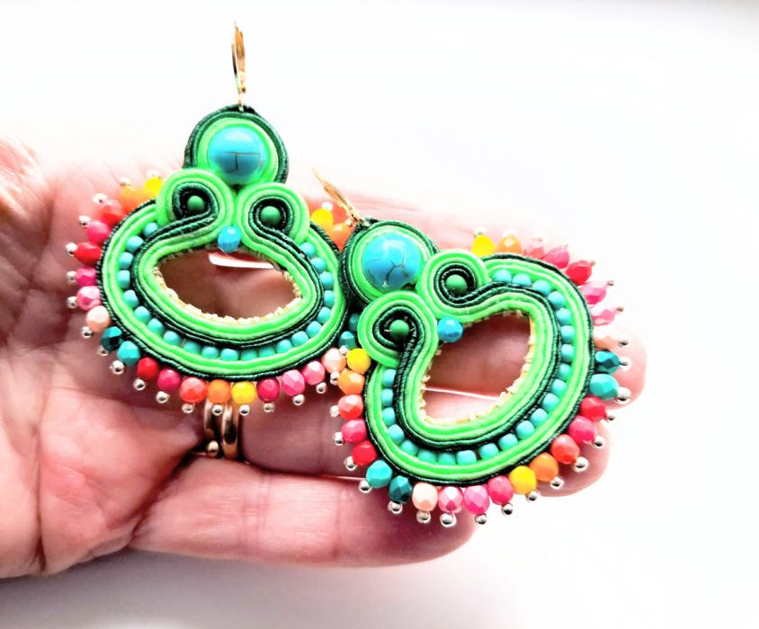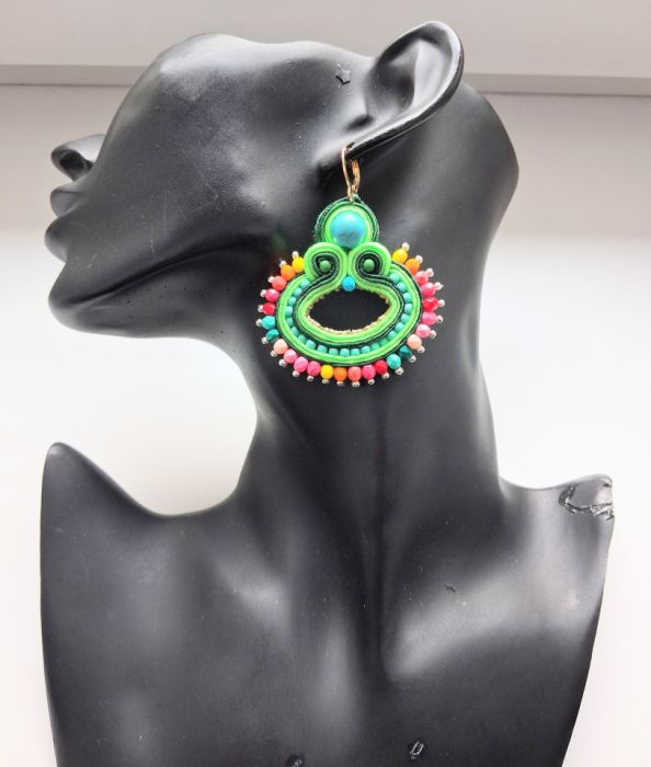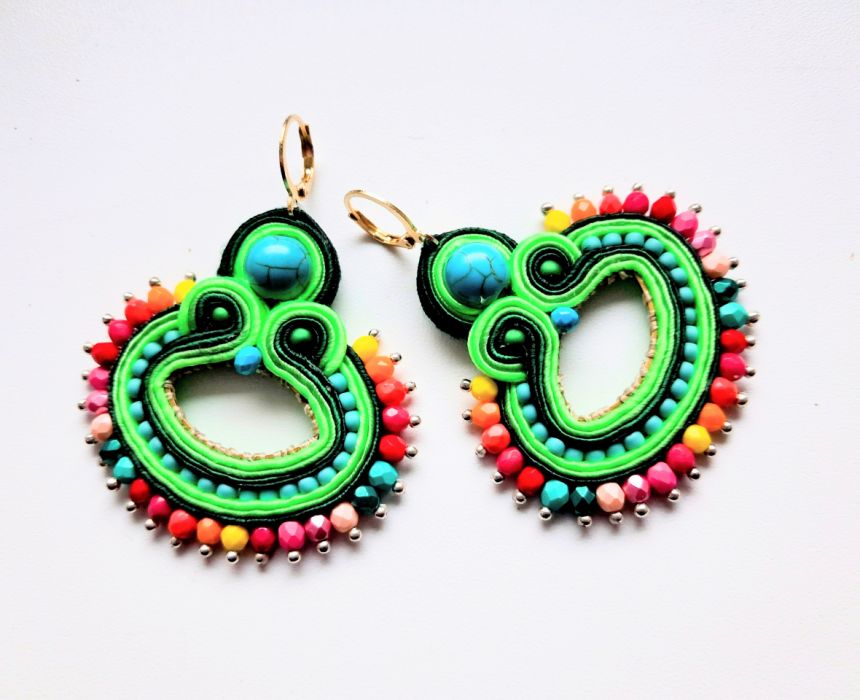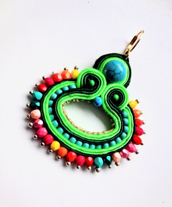 Kolczyki wykonane w modnej technice haftu sutaszowego. Jest ona pracochłonna, ale daje piękne efekty.