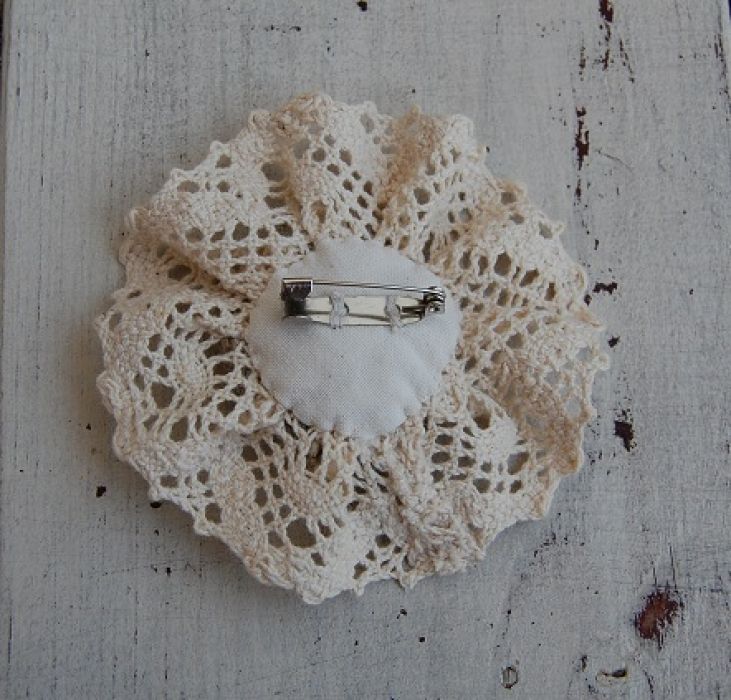 Nazwa produktu: Len z koronką - rustykalna broszka