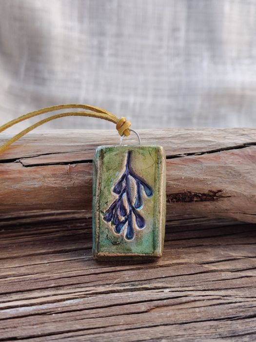 Wyjątkowy, ręcznie wykonany wisiorek inspirowany spokojem natury i leśną harmonią. Delikatny motyw gałązki w odcieniach zieleni i głębokiego granatu nadaje mu subtelnej elegancji i organicznego charakteru. Wykonany z glinki samoutwardzalnej i zabezpieczony warstwą żywicy, zachwyca lekko połyskującą powierzchnią oraz trwałością. To idealny wybór dla osób, które cenią naturalne piękno, rękodzieło i unikalne dodatki z duszą.