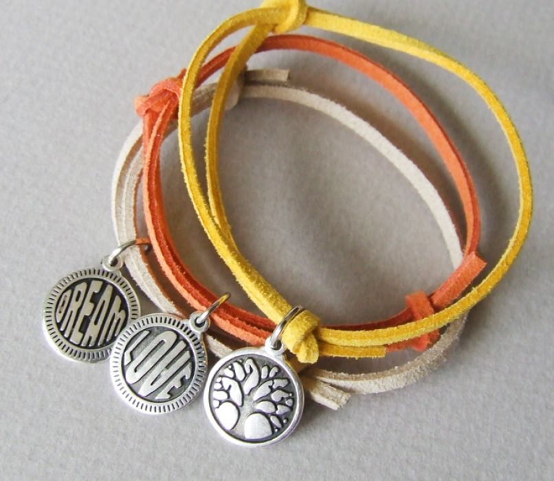 KOMPLET BRANSOLETEK**LIFE LOVE DREAM yellow**rzemieniowe bransoletki o regulowanym obwodzie (zamszowe, miękkie rzemienie) i dwustronne, ozdobne zawieszki (z jednej strony tekst, z drugiej obrazek). POLECAM!
