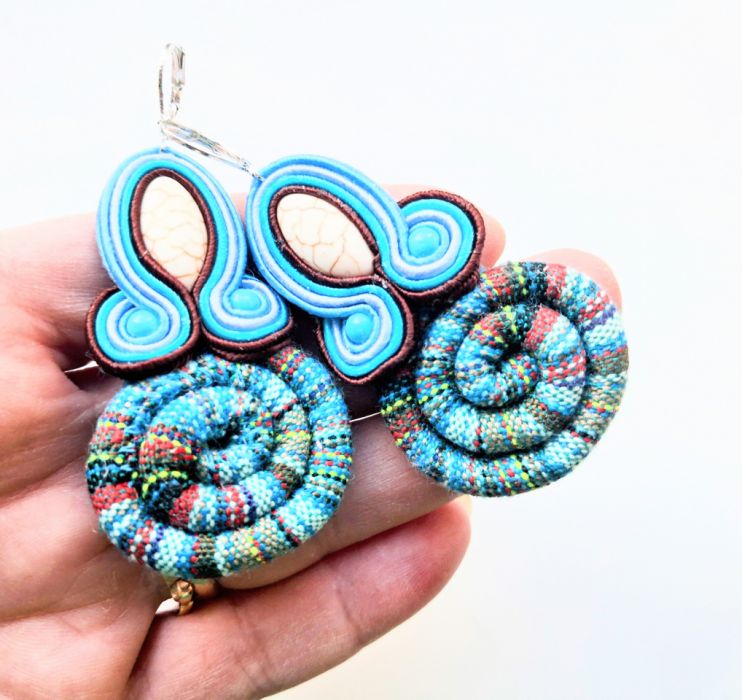 Kolczyki wykonane w modnej technice haftu sutaszowego. Jest ona pracochłonna, ale daje piękne efekty.