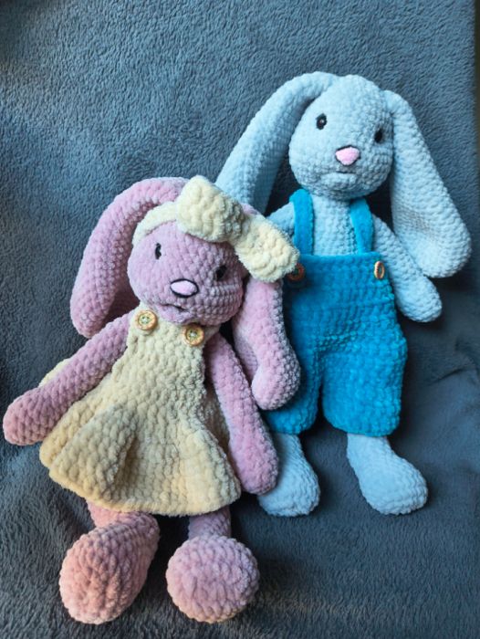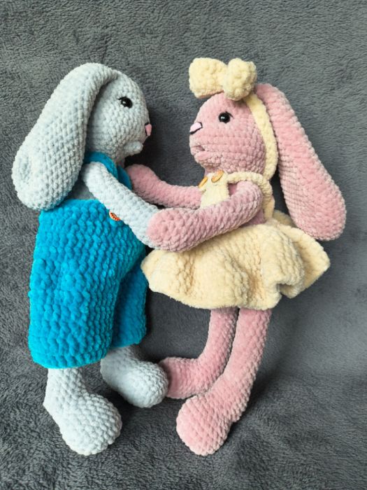 Urocza para ręcznie wykonanych króliczków przytulanek.