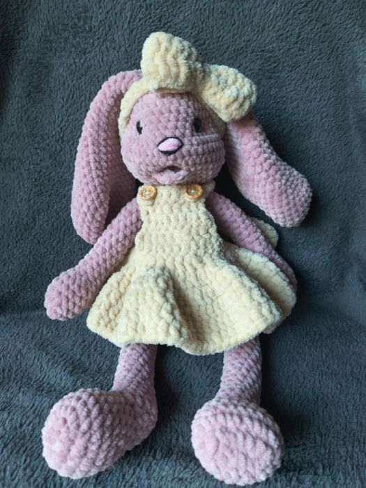 Każdy króliczek został wykonany z dużą dbałością o detale – posiada ręcznie szyte elementy oraz starannie dopracowane ubranko.