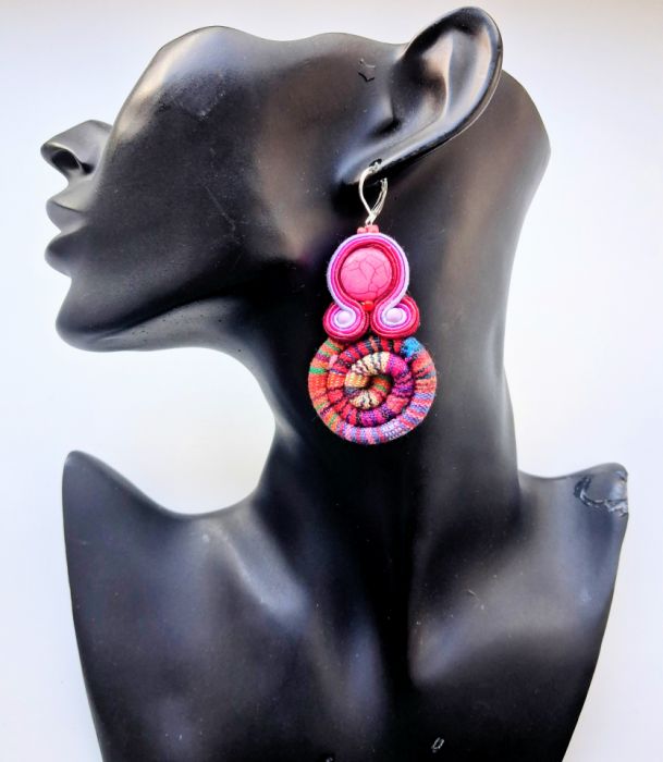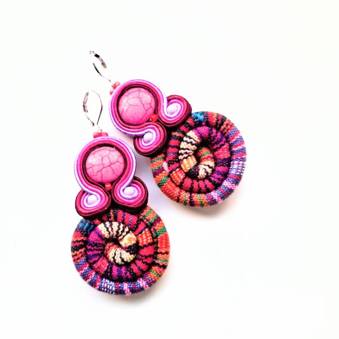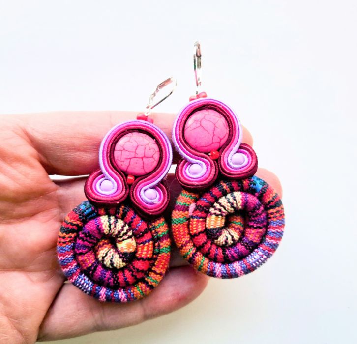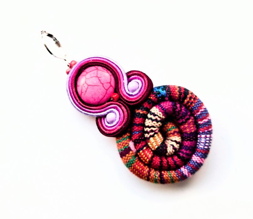 Kolczyki wykonane w modnej technice haftu sutaszowego. Jest ona pracochłonna, ale daje piękne efekty.