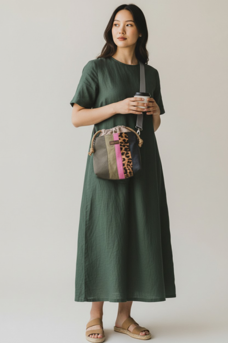 Zadaj pytanie dotyczące produktu: Listonoszka z kominem patchwork panterka