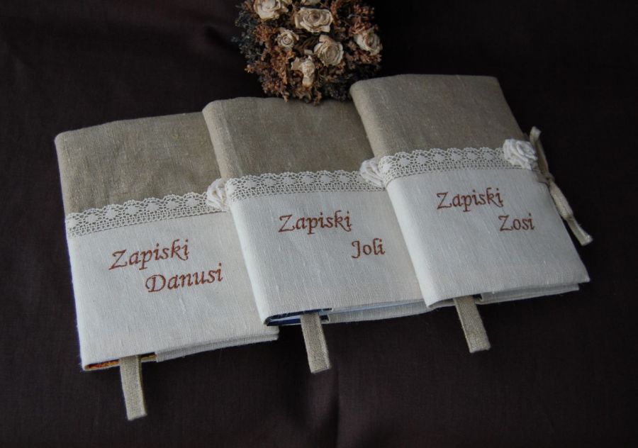 Przy składaniu zamówienia proszę podać treść napisu, jaka ma zostać wyhaftowana na notesie, np. Zapiski Zosi itp.