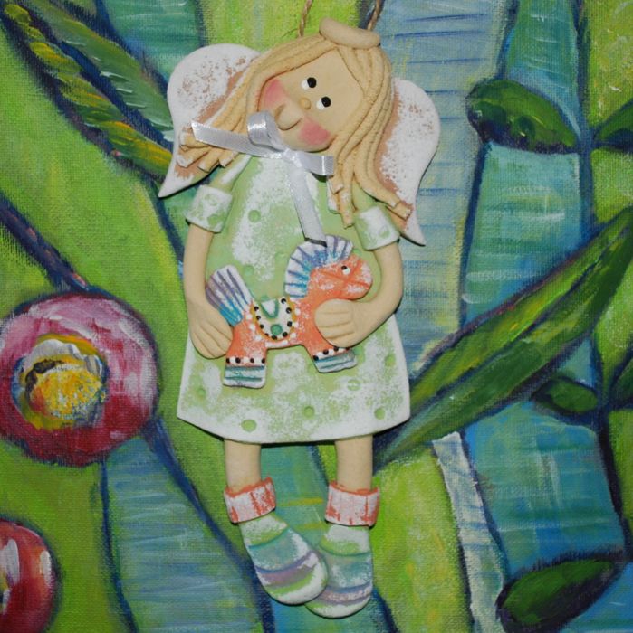 Nazwa produktu: Lubię te koniki - aniołek z masy solnej, prezent, dekoracja