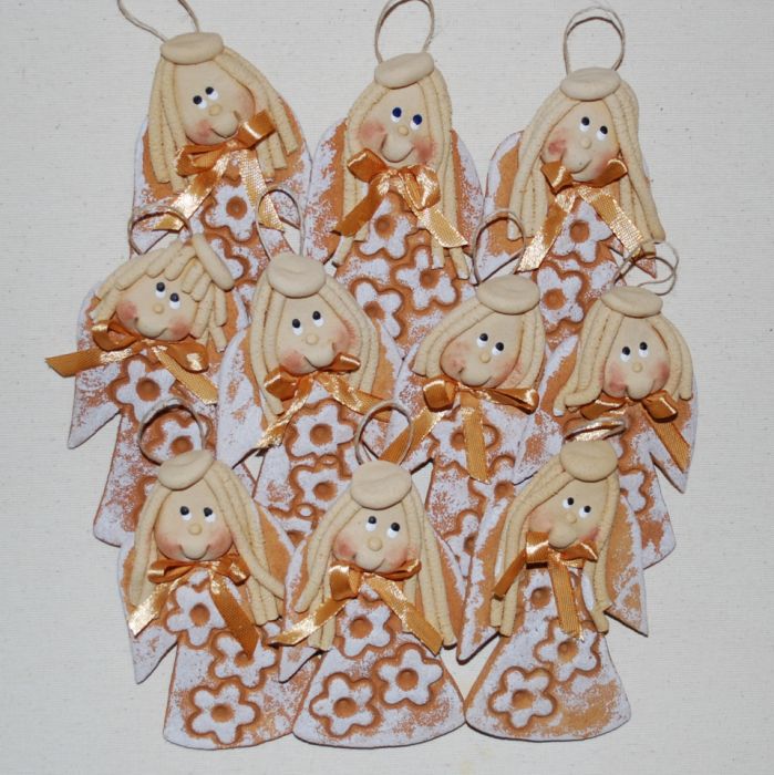 Komplet 10 aniołków, gotowych do wręczenia gościom, np. z okazji Komunii Św., chrztu lub uczniom z okazji zakończenia roku szkolnego.