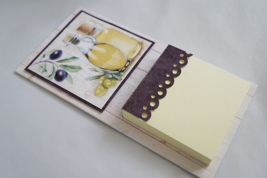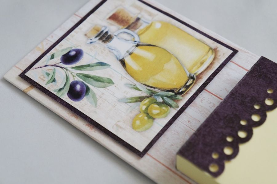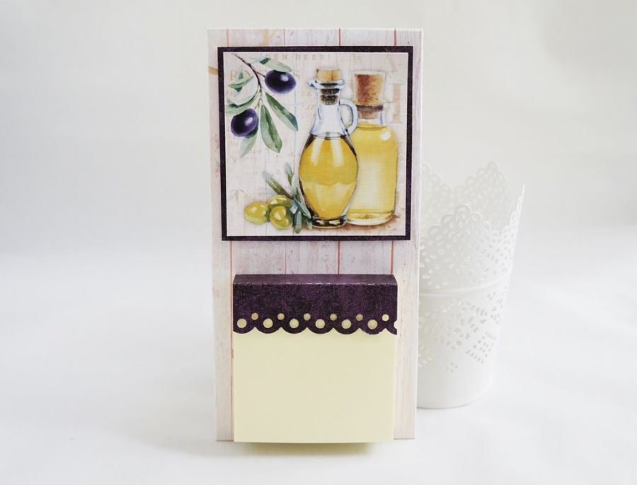 Magnes z notesem na podręczne notatki. Ozdobiony grafiką o tematyce kuchennej.