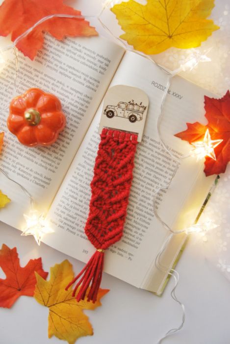 Makramowa zakładka do książki Dyniowy wóz to małe dzieło sztuki, które wprowadza do codziennych chwil czytania ciepło jesiennego klimatu i rękodzielniczej magii.