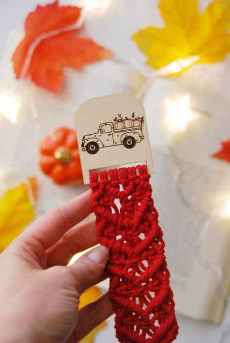 Nazwa produktu: Makramowa zakładka do książki Dyniowy wóz