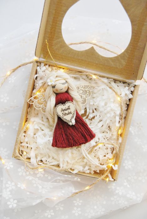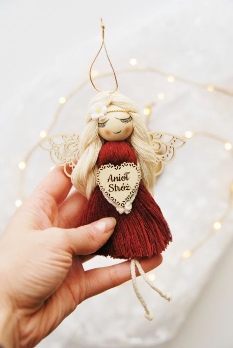 Nazwa produktu: Makramowy Anioł Stróż - burgundowy aniołek
