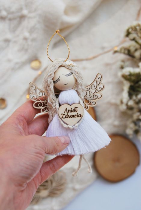 Nazwa produktu: Makramowy Anioł Zdrowia - pomysł na prezent