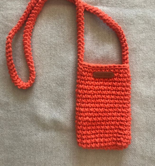 Ręcznie robiona torba na telefon ze sznurka bawełnianego ,torebka nie jest zapinana.