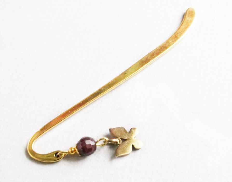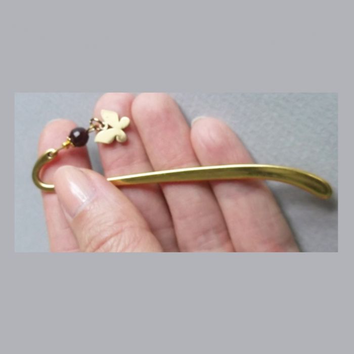 Mała, metalowa zakładka do książek z motylkiem i naturalnym granatem. Ozdobnie pakuję -na prezent.