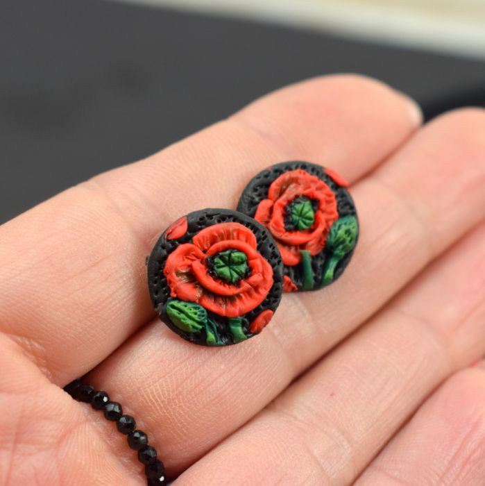 Nazwa produktu: Małe kolczyki sztyfty "czerwony mak"