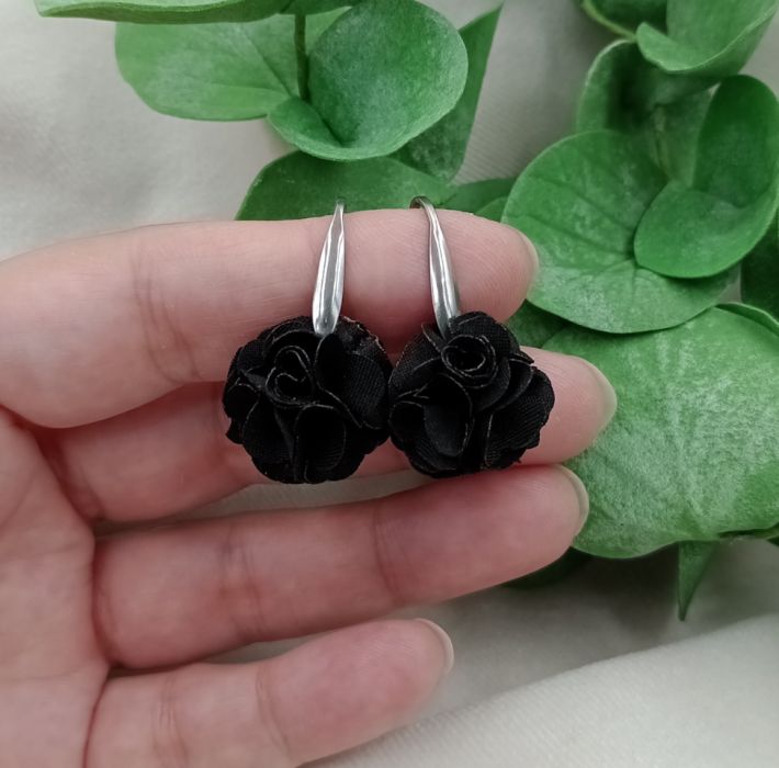 Zadaj pytanie dotyczące produktu: Małe krótkie czarne lekkie kolczyki kwiaty kwiatki