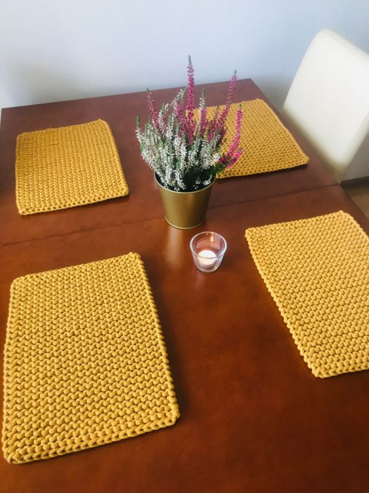 Podkładki na stół,pod talerz , wykonane ze bawełnianego sznurka o grubości 5mm o niepowtarzalnym wzorze.