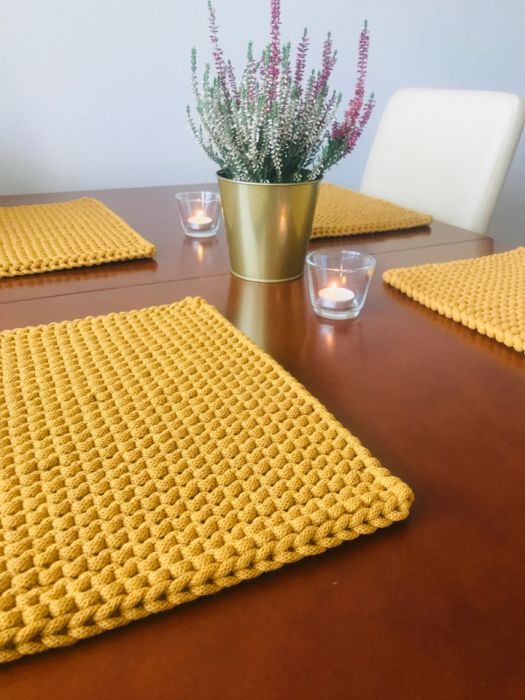 Podkładki na stół,pod talerz , wykonane ze bawełnianego sznurka o grubości 5mm o niepowtarzalnym wzorze.