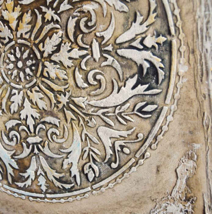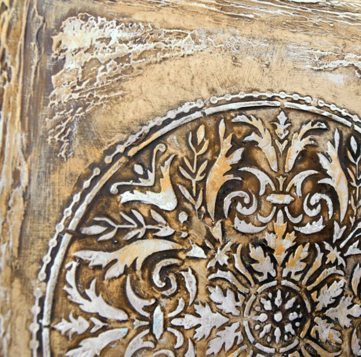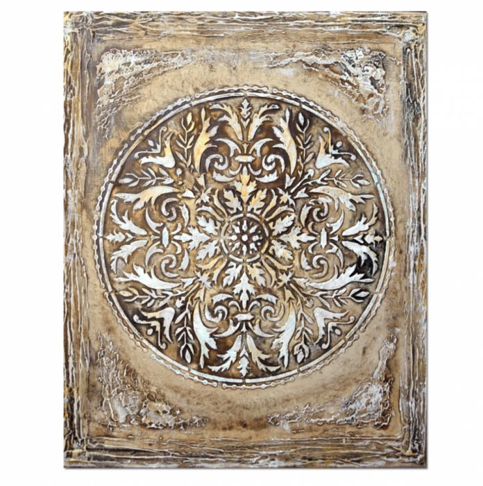 Oryginalny obraz malowany ręcznie w technice akrylowej, z grubą, wypukłą strukturą wzoru, na płótnie naciągniętym na ramę o grubości ok. 2 cm. Format: 40/50 cm. Obraz jest sygnowany, pokryty werniksem dla ochrony przed wilgocią. Boki zamalowane w tonacji całości więc nie wymaga oprawy.