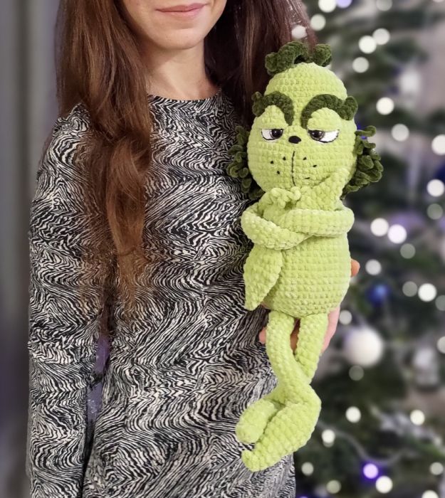 Pluszowy Grinch na szydełku będzie uroczym prezentem dla dziecka lub przyjaciół na Święta Bożego Narodzenia lub będzie cudowną ozdobą w pobliżu choinki!