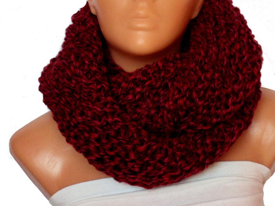 wydziergany z włóczki w kolorach: bordo, czarny i różowy. bardzo oryginalny dodatek do ubioru. polecam. zapraszam do obejrzenia moich wyrobów. znajdziesz tam ciekawe rzeczy w różnych wzorach i kolorach