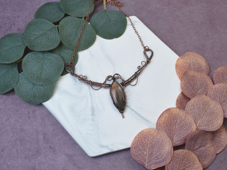 Zadaj pytanie dotyczące produktu: Miedziany naszyjnik wire wrapping z labradorytem #503