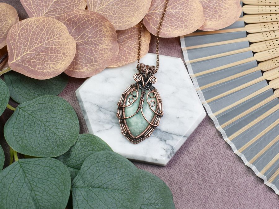Zadaj pytanie dotyczące produktu: Miedziany wisiorek wire wrapping z amazonitem #531