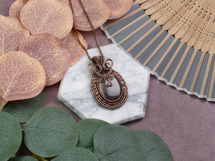 Ten miedziany wisiorek został stworzony przy użyciu techniki wire wrapping z wyjątkowym kamieniem o nazwie mookait. Mookait, znany również jako jaspis mooka, to kamień o bogatej palecie barw, obejmujący odcienie czerwieni, brązu i kremu. Jego właściwości obejmują wzmacnianie poczucia rzeczywistości, pobudzanie zdolności przystosowawczych i zwiększanie pewności siebie. Mookait jest również uważany za kamień przynoszący spokój i równowagę emocjonalną. W połączeniu z misternie wykonanym splotem miedzi, ten wisiorek nie tylko zachwyca estetyką, ale także oferuje noszącemu korzyści zarówno wizualne, jak i energetyczne.