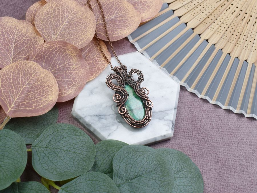 Zadaj pytanie dotyczące produktu: Miedziany wisiorek wire wrapping z szatukitem #527